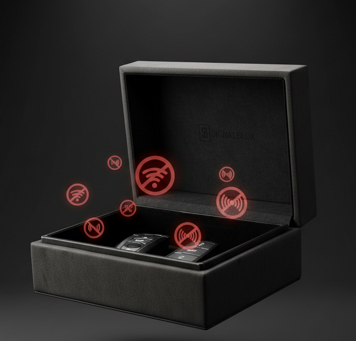 🧳 Portable protection → In addition to the home box, we also provide a compact Signal Blox pouch. Carry it in your pocket or bag and it blocks signals just as effectively when you’re on the go.