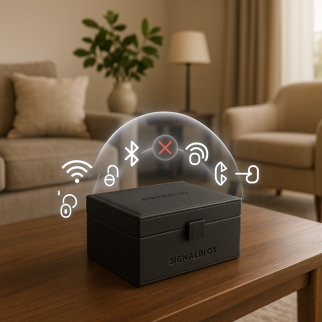 🧳 Portable protection → In addition to the home box, we also provide a compact Signal Blox pouch. Carry it in your pocket or bag and it blocks signals just as effectively when you’re on the go.